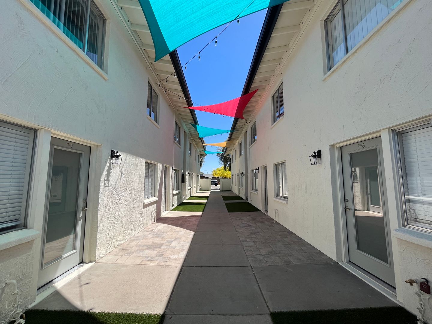 Venture on Marlette is a two-story, 14-unit apartment building with a 21st century updated color palette, colorful mural, modern touches, all working together to create a desirable urban community.